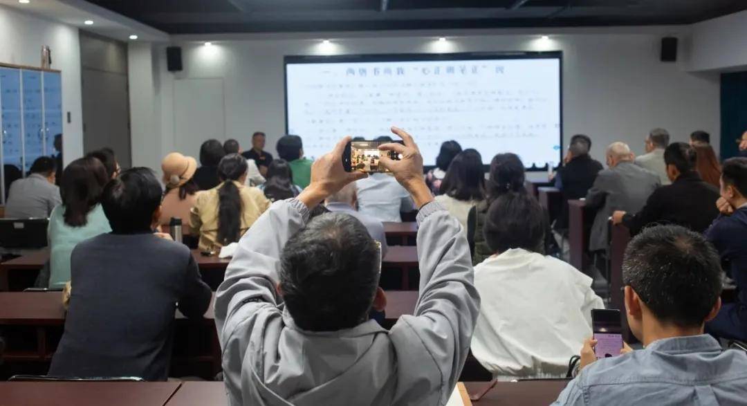 讲座现场互动热烈。针对听众提出的现代书写健康姿势、书法教育普及及书法与心理健康关系等问题,陈志平结合自身体验与研究,强调了恢复毛笔书写对于现代人身心调节的独特价值,认为书写过程具有“通塞决淤”的心理疗愈作用。